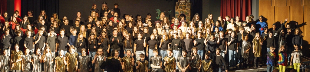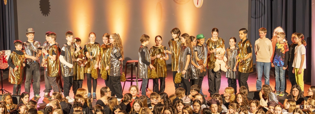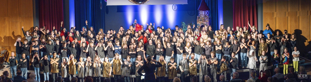 Sängerinnen und Sänger, Solisten, Band, Technik und Bühnenhelfer sowie Bühnenbildner: Das Musikprofil der 6.Klassen des IKG sowie alle Fünftklässler – unterstützt von Jugendlichen aus höheren Klassenstufen – boten eine Glanzleistung.