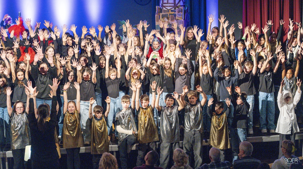 Mit begeisterten Ovationen feierte das Publikum in der bis auf den letzten Platz gefüllten Aula die überragenden Leistungen der mehr als 150 Mitwirkenden unter der Gesamtleitung von Stefanie Diesch und Corinna Scholten.