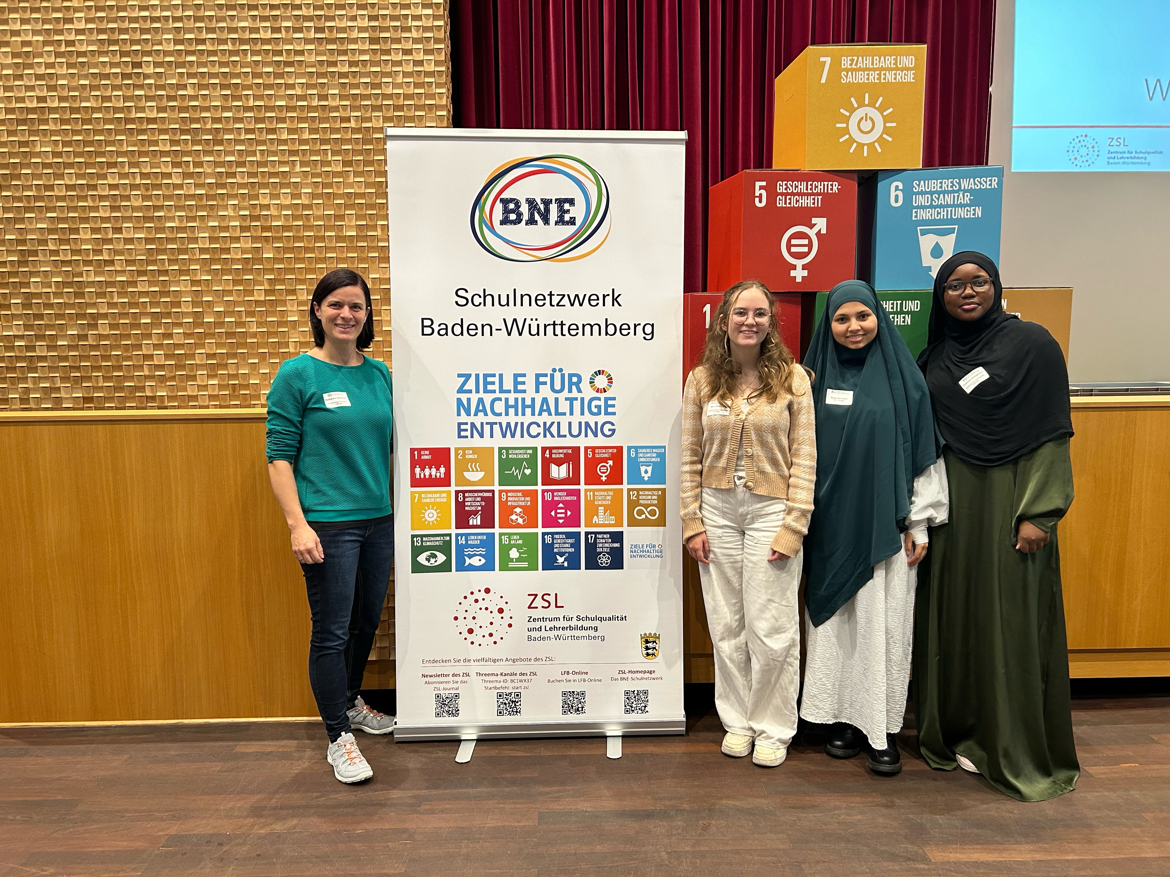 Am 18.10.2024 machten sich Mahbube Amiri, Eyotuoyo Omagbemi (beide Klasse 9) und Elena Umbrecht (J2) mit Frau Kaltenbach auf den Weg nach Rastatt zur landesweiten BNE-Netzwerktagung 2024. Der thematische Schwerpunkt lag in diesem Jahr auf der Integration von BNE im Unterricht. Zu Beginn fand die Preisverleihung des Wettbewerbs „alle für EINE WELT für alle“ mit Staatsministerin Sandra Boser statt. Beeindruckende Beispiele von Schülerfirmen, Engagement bei der Entwicklung eines eigenen nachhaltigen Modelabels für die SchülerInnen der eigenen Schule oder der Organisation von internationalen Diskussionsgipfeln inspirierten die vier IKGlerinnen nachhaltig. Im Anschluss konnte bei einem Impulsvortrag zweier Professoren der Pädagogischen Hochschulen Freiburg und Heidelberg sowie einer anschließenden Fishbowl Diskussionsrunde mit Schülern, Lehrern, Rektoren und Vertretern des Zentrums für Schlüsselqualifikationen (ZSL) über Gelingensfaktoren der Implementierung von BNE im Unterricht diskutiert werden. Am Nachmittag fanden verschiedene Workshops mit unterschiedlichsten BNE-Schwerpunkten statt. Im Kontext dessen durfte die IKG-Gruppe unser Schulgartenprojekt einer großen und sehr begeisterten Interessentengruppe vorstellen. Mit den Köpfen voller neuer Ideen und Anregungen für unsere Schulgemeinschaft trat die Gruppe am frühen Abend die Rückreise an und wird sich in den kommenden Wochen mit der ganzen Schülerschaft Gedanken über mögliche Projekte an unserer Schule machen.