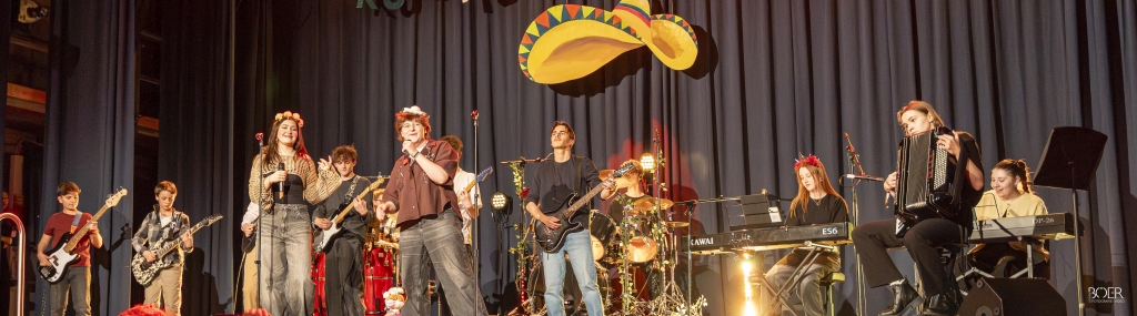 Durch den Abend führten unsere Moderatoren Jack, Pedro und Nadija, die das abwechslungsreiche Programm souverän begleiteten. Die Zuschauerinnen und Zuschauer konnten sich über zahlreiche musikalische und tänzerische Beiträge freuen – von der Big Band über die Schulband bis hin zu Einzel- und Gruppenaufführungen war für jeden Geschmack etwas dabei.