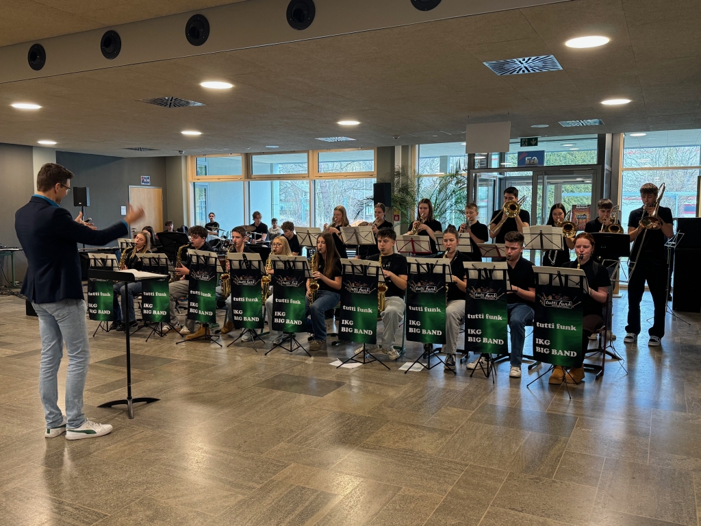 Am 09.02.2026 fand am IKG der Schnuppernachmittag für die Viertklässlerinnen und Viertklässler sowie ihre Eltern statt. Durch die musikalische Begleitung der Big Band „Tutti Funk“ und der Schulband bekamen unsere Besucherinnen und Besucher bereits einen ersten Eindruck von den musikalischen Möglichkeiten an unserer Schule.