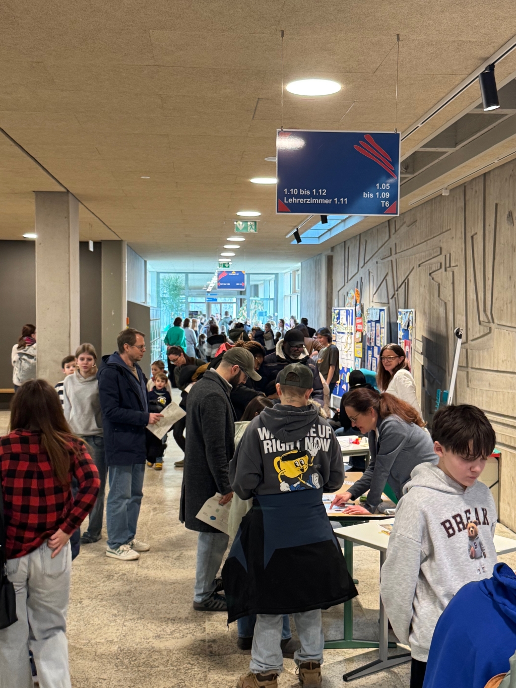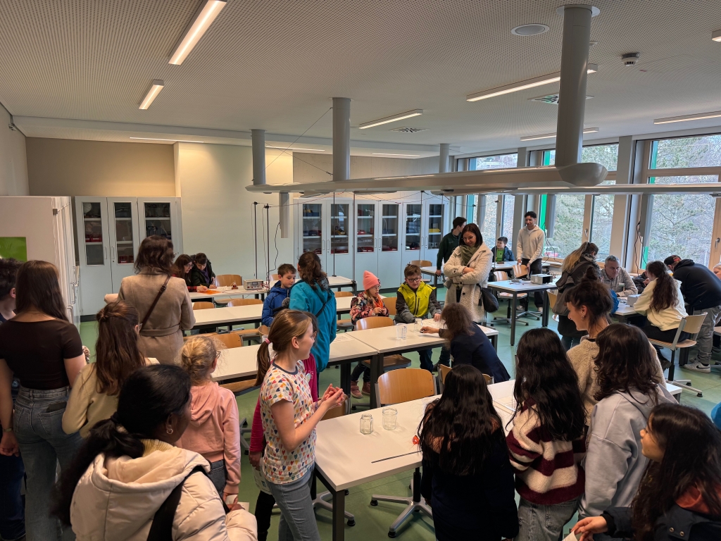 Zur Stärkung boten die Sechstklässlerinnen und Sechstklässler Kuchen an. Anschließend wurde die Schule fleißig besichtigt. Ob am Chemie-, Geo- oder Spanischstand – überall gab es die Möglichkeit, sich alles genauer anzuschauen, sei es durch Spiele, Experimente oder Quizfragen.