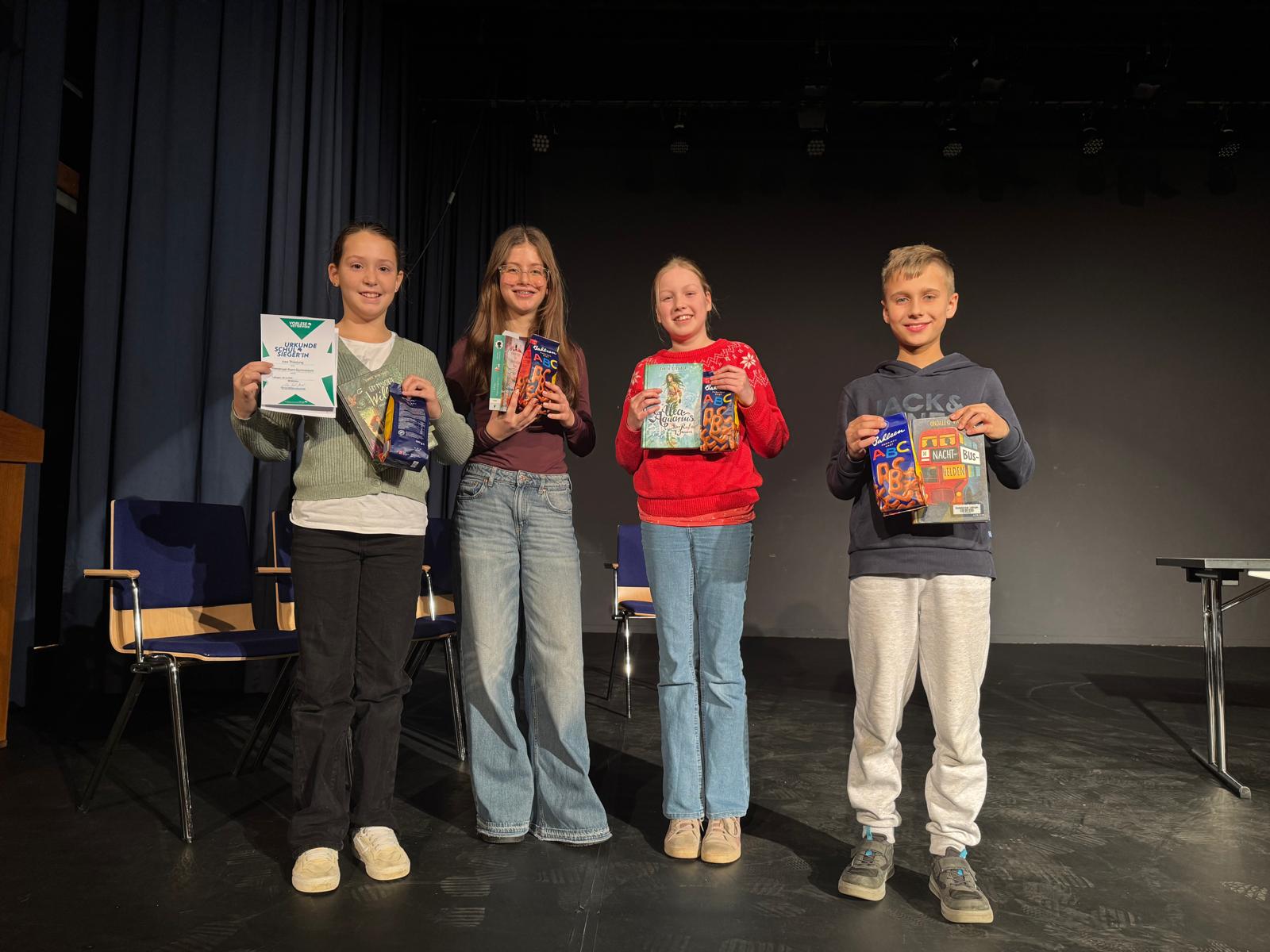 Am vergangenen Dienstagvormittag, den 9.12.2025 fand an unserer Schule der Vorlesewettbewerb der 6. Klassen statt. In ruhiger und konzentrierter Atmosphäre stellten die vier Klassensieger/innen ihr Können unter Beweis und nahmen das Publikum mit in die Welt der Bücher.