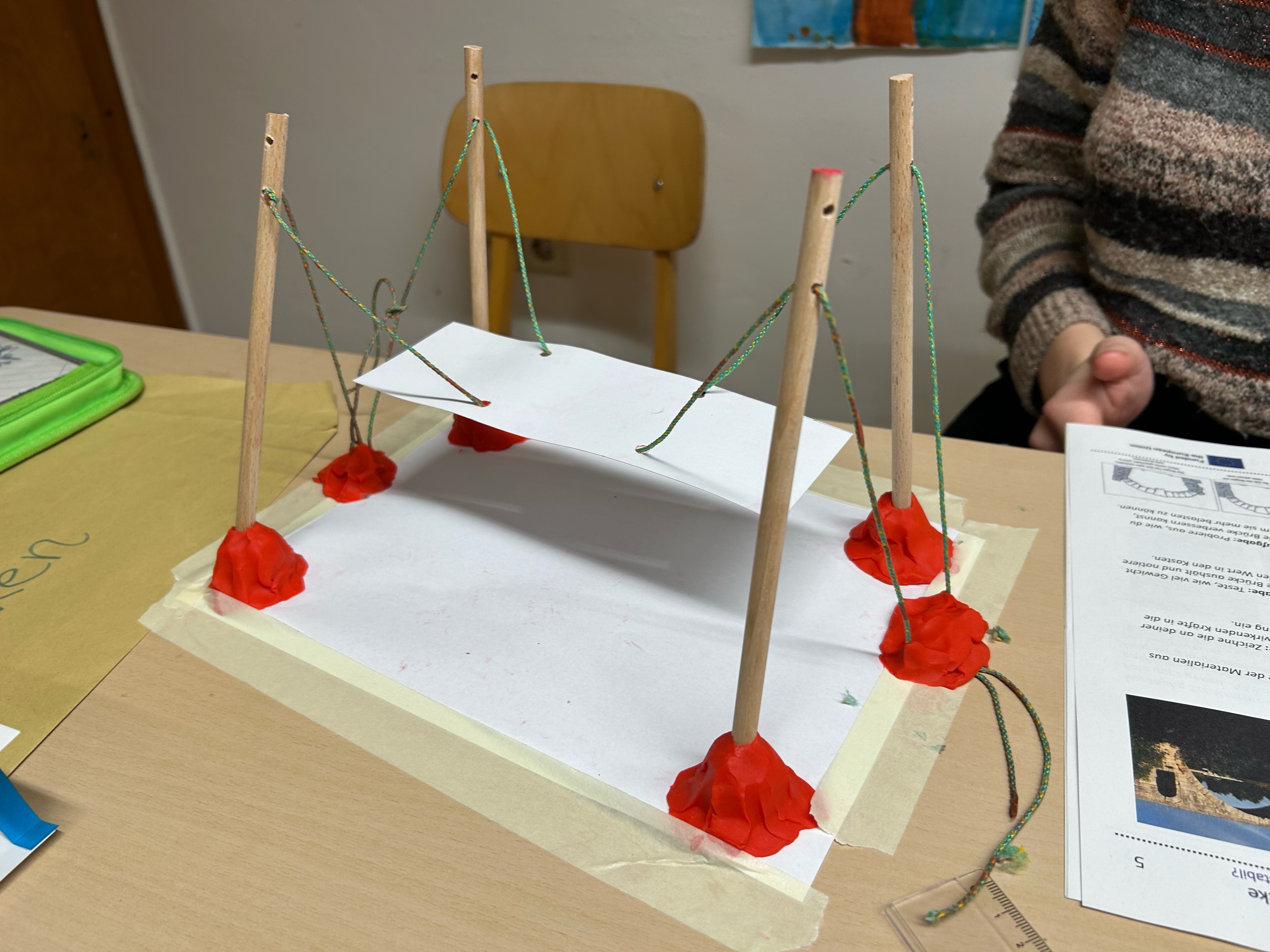 Am 11.12.2024 unterstützte Sofia Savchak aus der Klasse 10d das Team des Schülerforschungszentrums Tuttlingen bei der Durchführung eines Grundschulworkshops zum Thema „Brücken“. Sie war einen ganzen Vormittag eigenständig für einen Jungen aus der Ukraine, dessen Sprachkenntnisse noch nicht ausreichen, um am Unterricht teilzunehmen, verantwortlich. Dank Ihrer Hilfe bei der Übersetzung von Arbeitsanweisungen und Erklärungen konnte dieser in der Rolle eines Brückeningenieurs Grundlagen von Statik, Kräften sowie verschiedene Brückenarten kennenlernen und bauen.