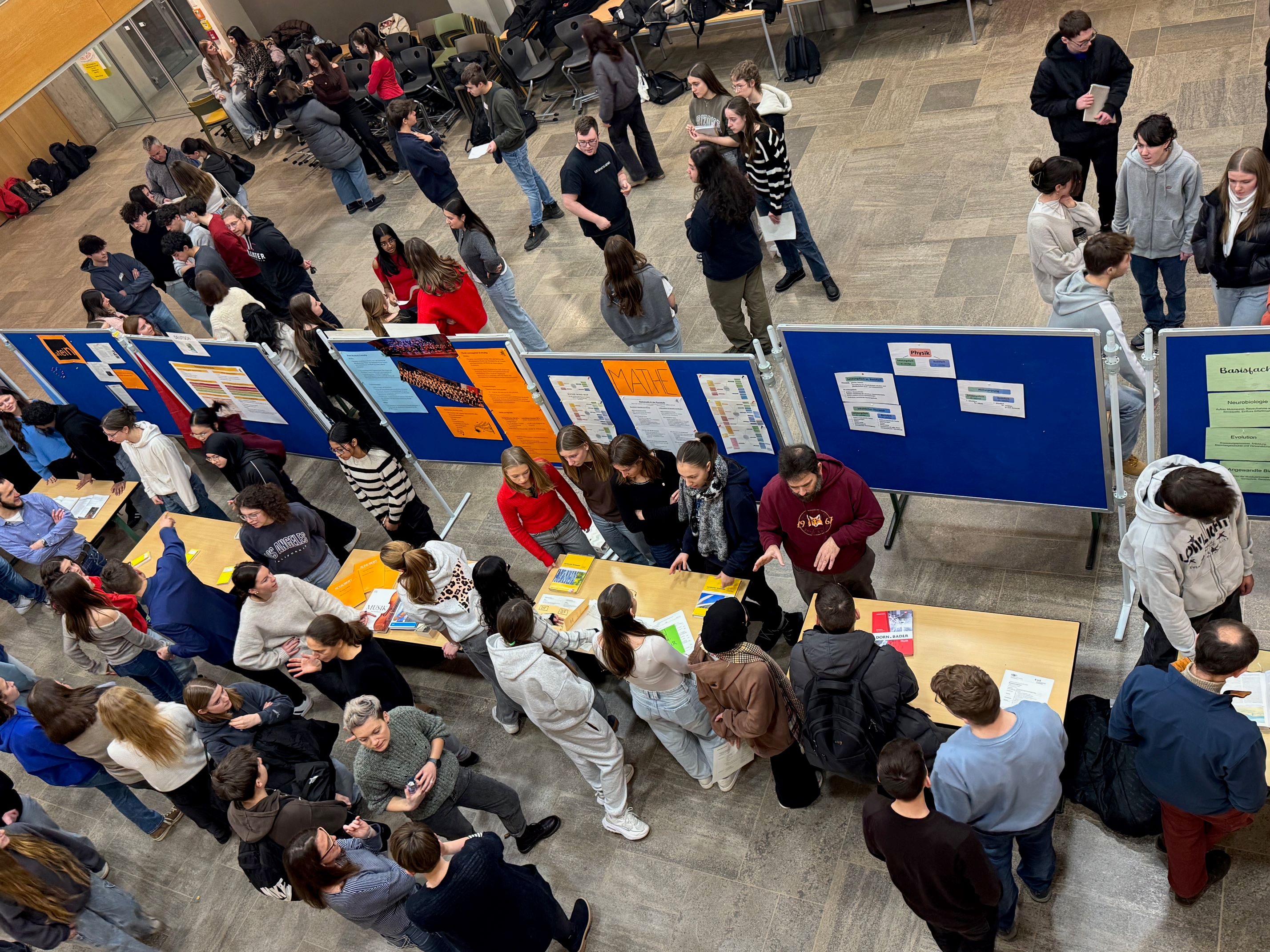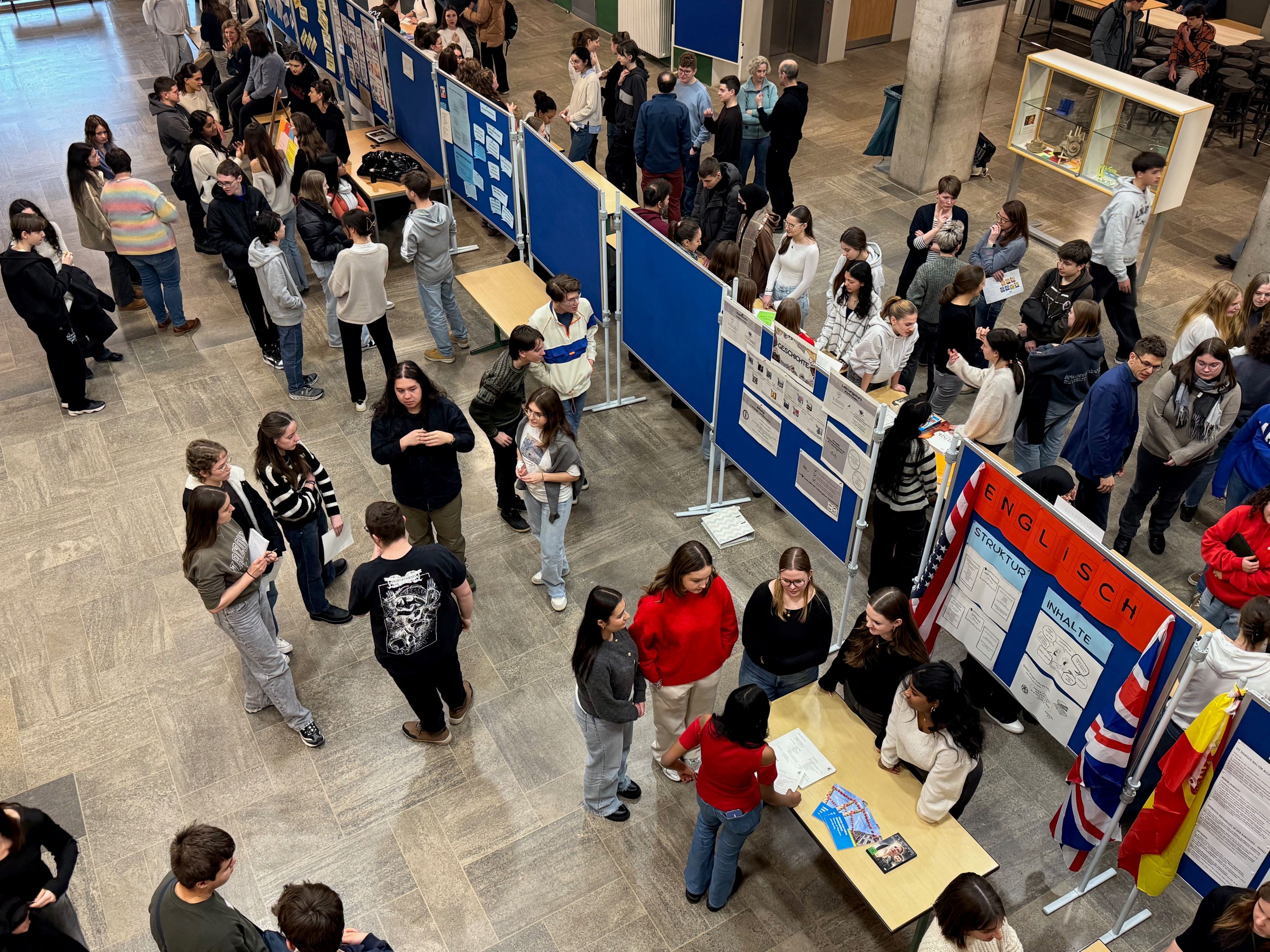 Die Veranstaltung bietet nicht nur umfassende Informationen an Stellwänden und durch Materialien, sondern auch die Möglichkeit, sich direkt mit den Lehrkräften auszutauschen. Diese beantworten alle Fragen und stehen mit ihrem Fachwissen beratend zur Seite. Ergänzt wird das Angebot durch Erfahrungsberichte von Schülerinnen und Schülern der Kursstufe, die ihre persönlichen Eindrücke und Tipps aus dem Schulalltag teilen. Der offene Austausch in einer lockeren Atmosphäre macht die Abibörse jedes Jahr zu einem wertvollen Bestandteil des Schullebens.