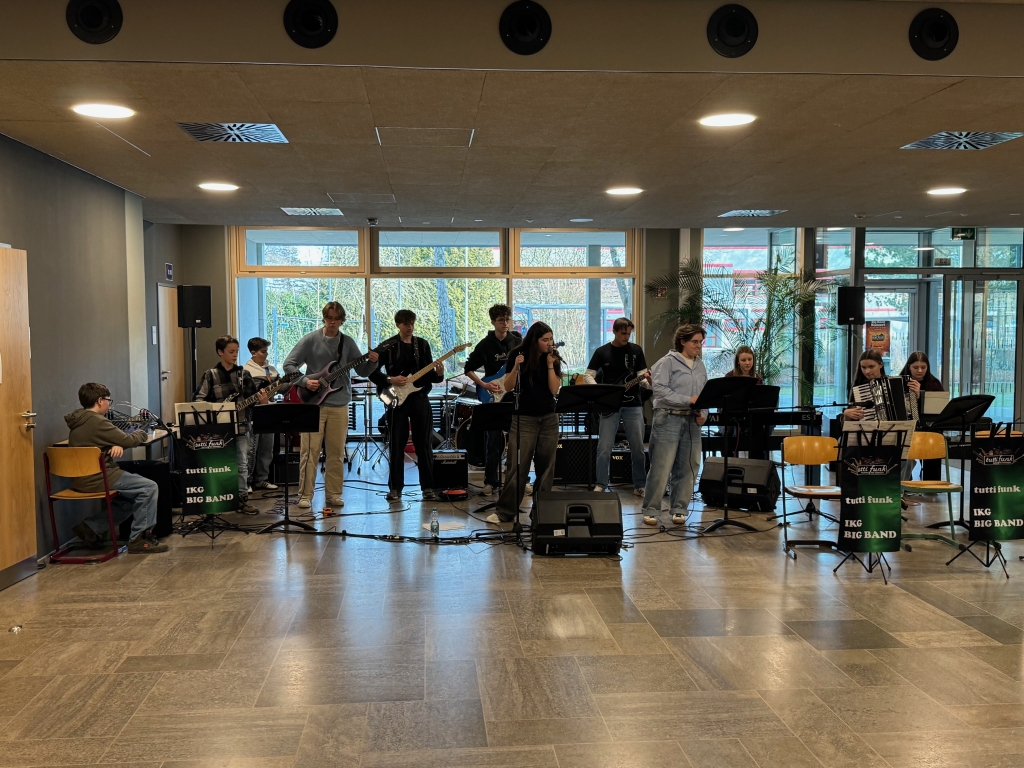 Am 09.02.2026 fand am IKG der Schnuppernachmittag für die Viertklässlerinnen und Viertklässler sowie ihre Eltern statt. Durch die musikalische Begleitung der Big Band „Tutti Funk“ und der Schulband bekamen unsere Besucherinnen und Besucher bereits einen ersten Eindruck von den musikalischen Möglichkeiten an unserer Schule.