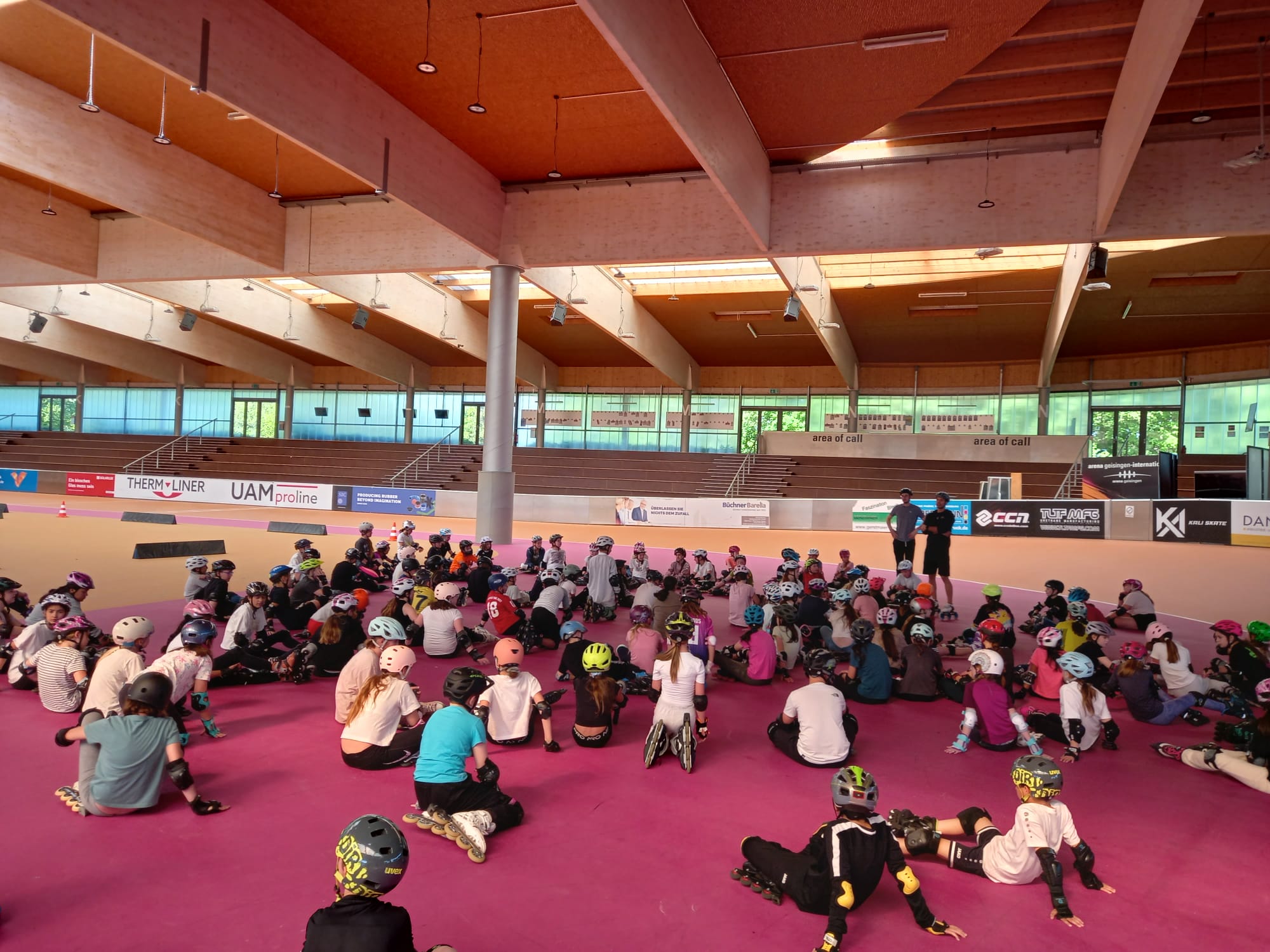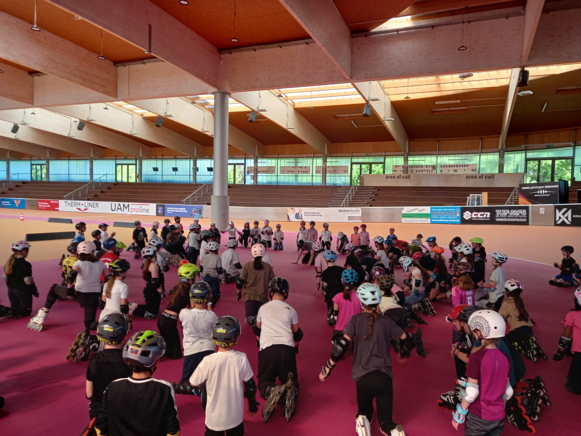 In kleinen Gruppen durchliefen die knapp 120 Kinder verschiedene Stationen, bei denen Geschicklichkeit, Teamgeist und Bewegung im Mittelpunkt standen. Sie wichen Hütchen aus, probierten sich im Inline-Hockey und traten in spannenden Staffelwettbewerben gegeneinander an. Mehrere erfahrene Trainerinnen und Trainer der Arena führten die Kinder geduldig in Tricks und Fahrtechniken ein und sorgten für einen sicheren Ablauf.